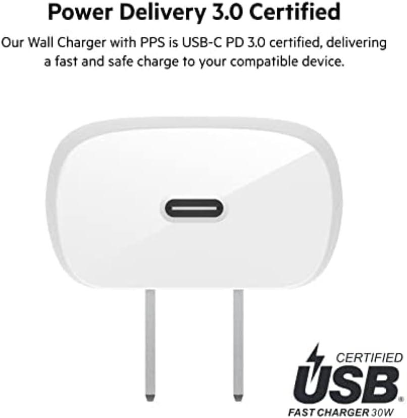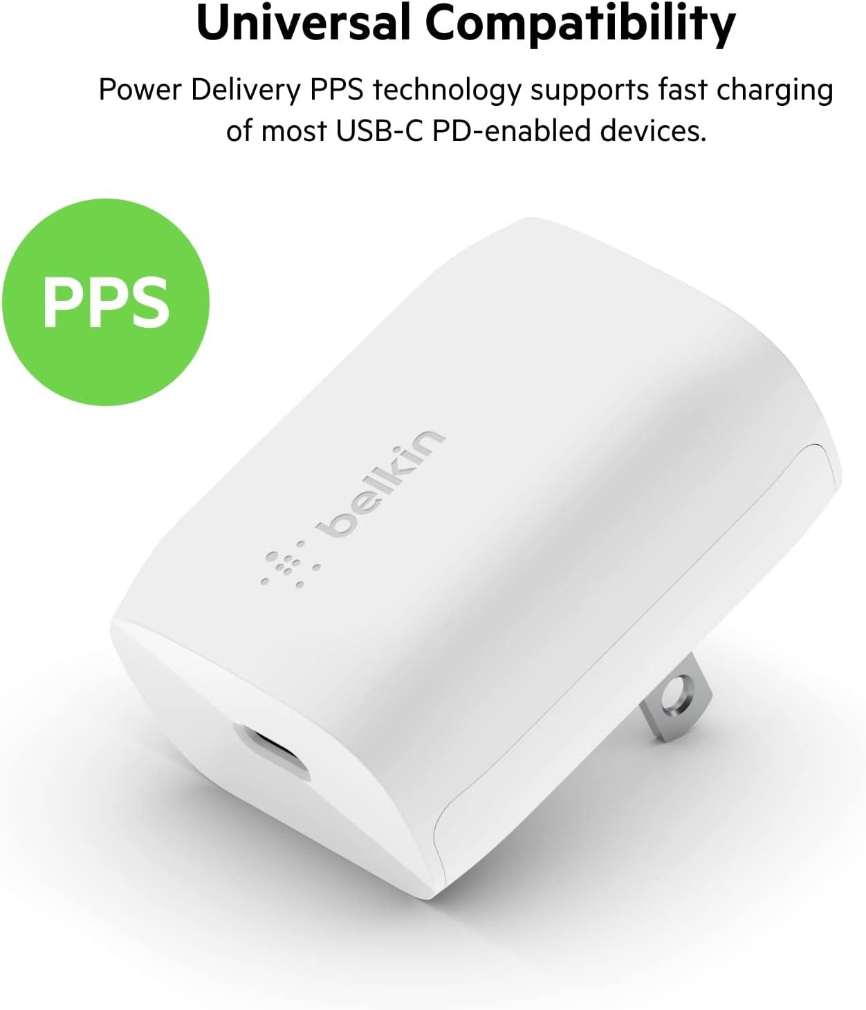 Belkin USB C Charger Block 30W – USB-C to C Cable Included – PPS, USB-IF Certified PD 3.0 Super Fast Charging – Samsung Galaxy S25, Apple iPhone 17, Air, Google Pixel, Nintendo Switch 2 & More – White(30W)