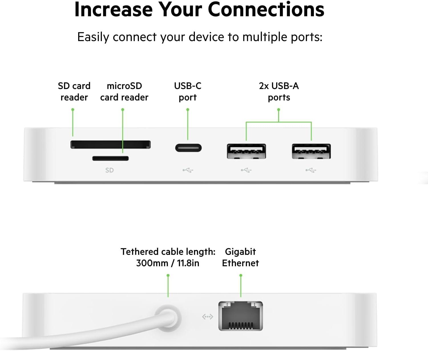 Belkin USB-C Hub, 6-in-1 Multi-Port Docking Station, Docking Station for iPad, iPad Pro, iPad Mini, MacBook, & More – 60W Power Delivery 3.0, 4K HDMI USB-A Ethernet & SD Card Ports(5-Port)