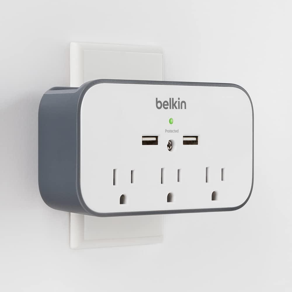 • Belkin Wall Surge Protector – 3 Outlet w/ 2 USB Ports Mount with Premium Protection Against Surges Safe Charge for Mobile Devices, Tablets & More (540 Joules)(1 Pack)