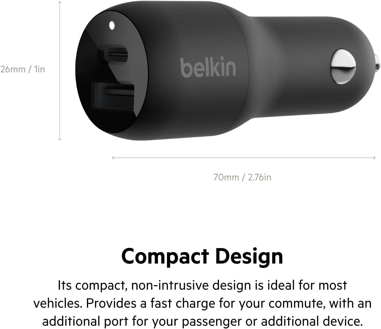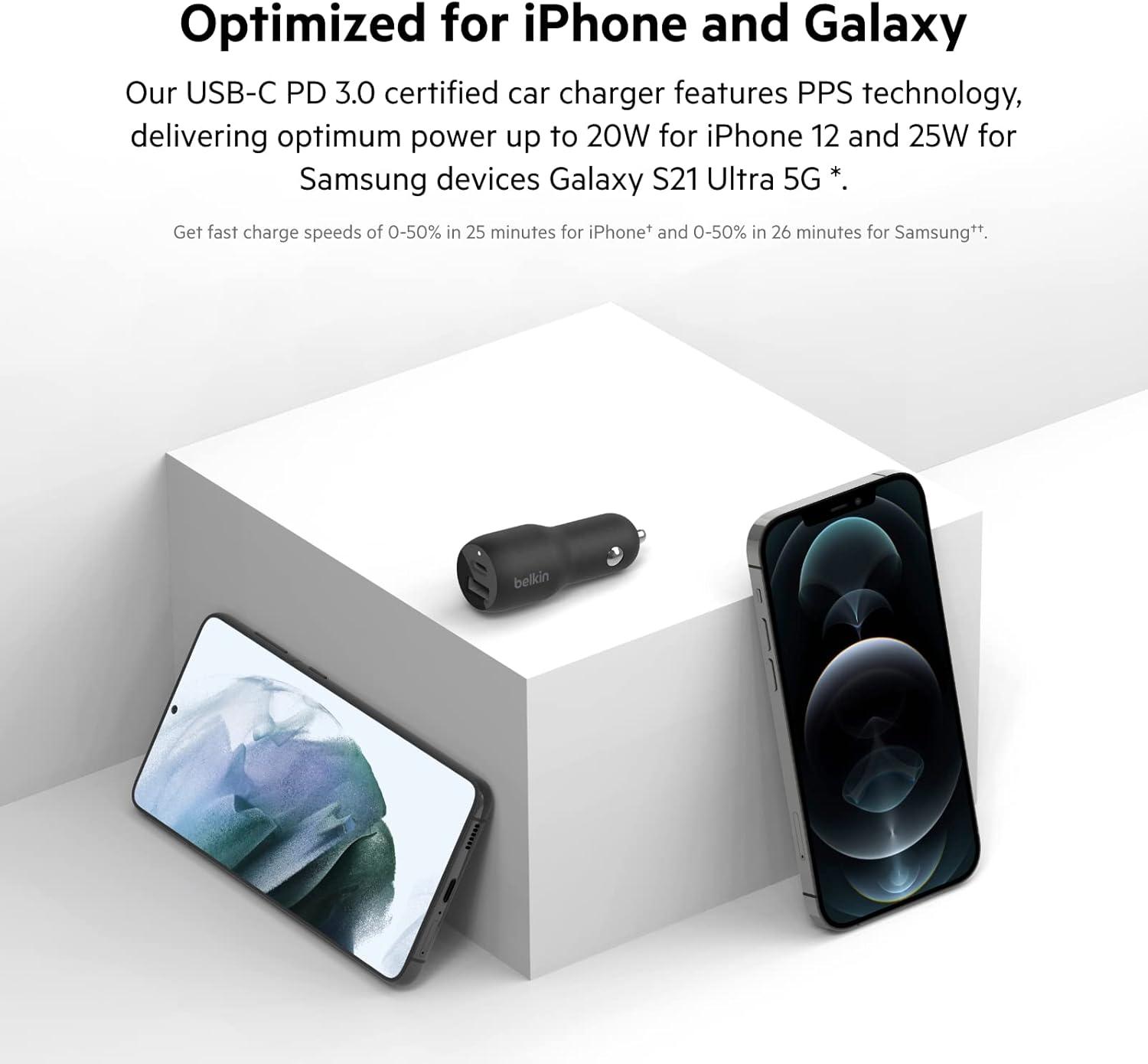 Belkin 36-Watt Dual-USB Car Charger – Power Delivery 2 18W USB-C Ports with PPS Charging Apple iPhone 14, 14 Pro, 14 Pro Max, iPhone 13, 13 Pro, 13 Pro Max Samsung Galaxy, AirPods – USB-C Charger(Dual USB-A & C 37W)