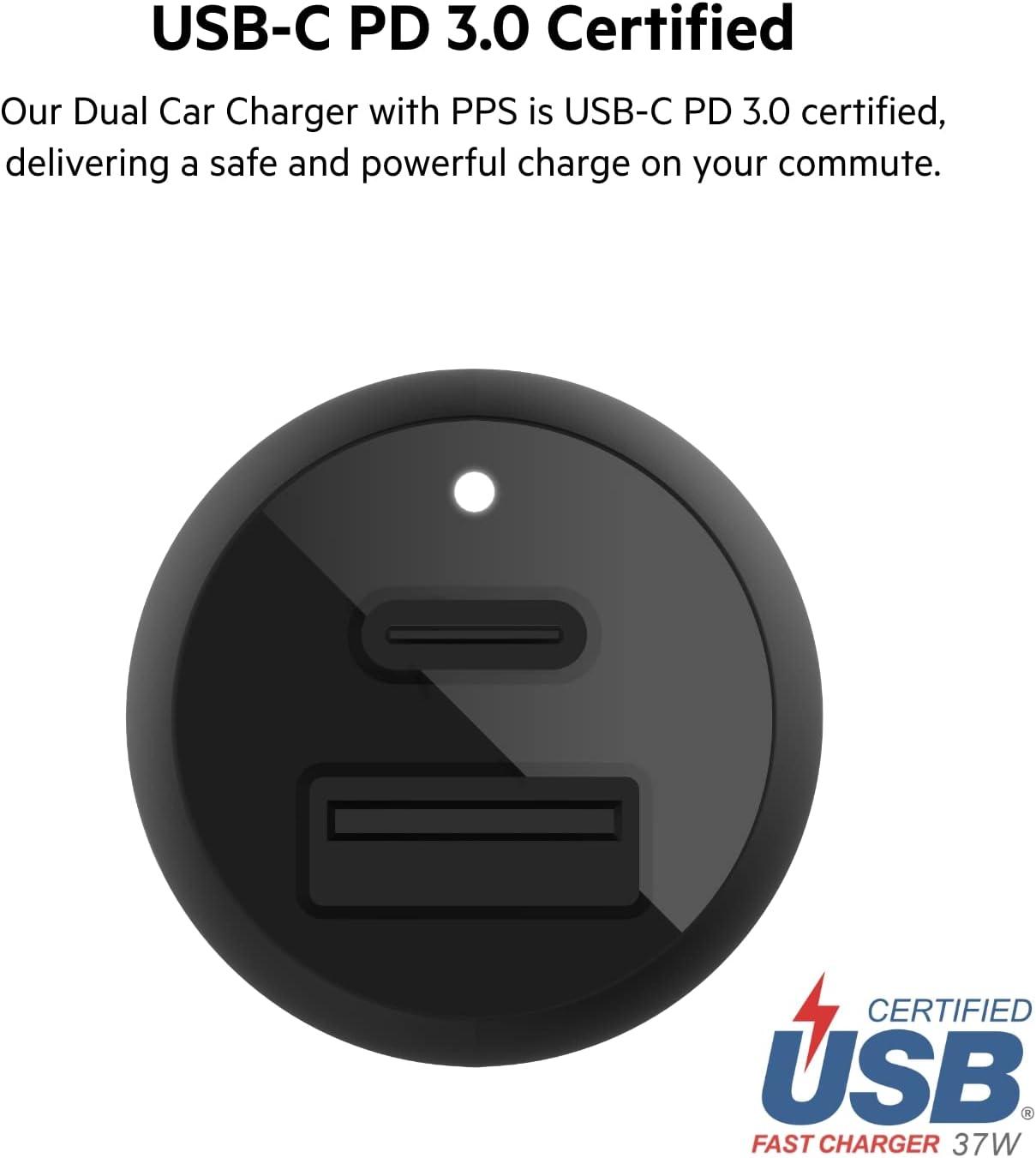 Belkin 36-Watt Dual-USB Car Charger – Power Delivery 2 18W USB-C Ports with PPS Charging Apple iPhone 14, 14 Pro, 14 Pro Max, iPhone 13, 13 Pro, 13 Pro Max Samsung Galaxy, AirPods – USB-C Charger(Dual USB-A & C 37W + USB-C Cable)