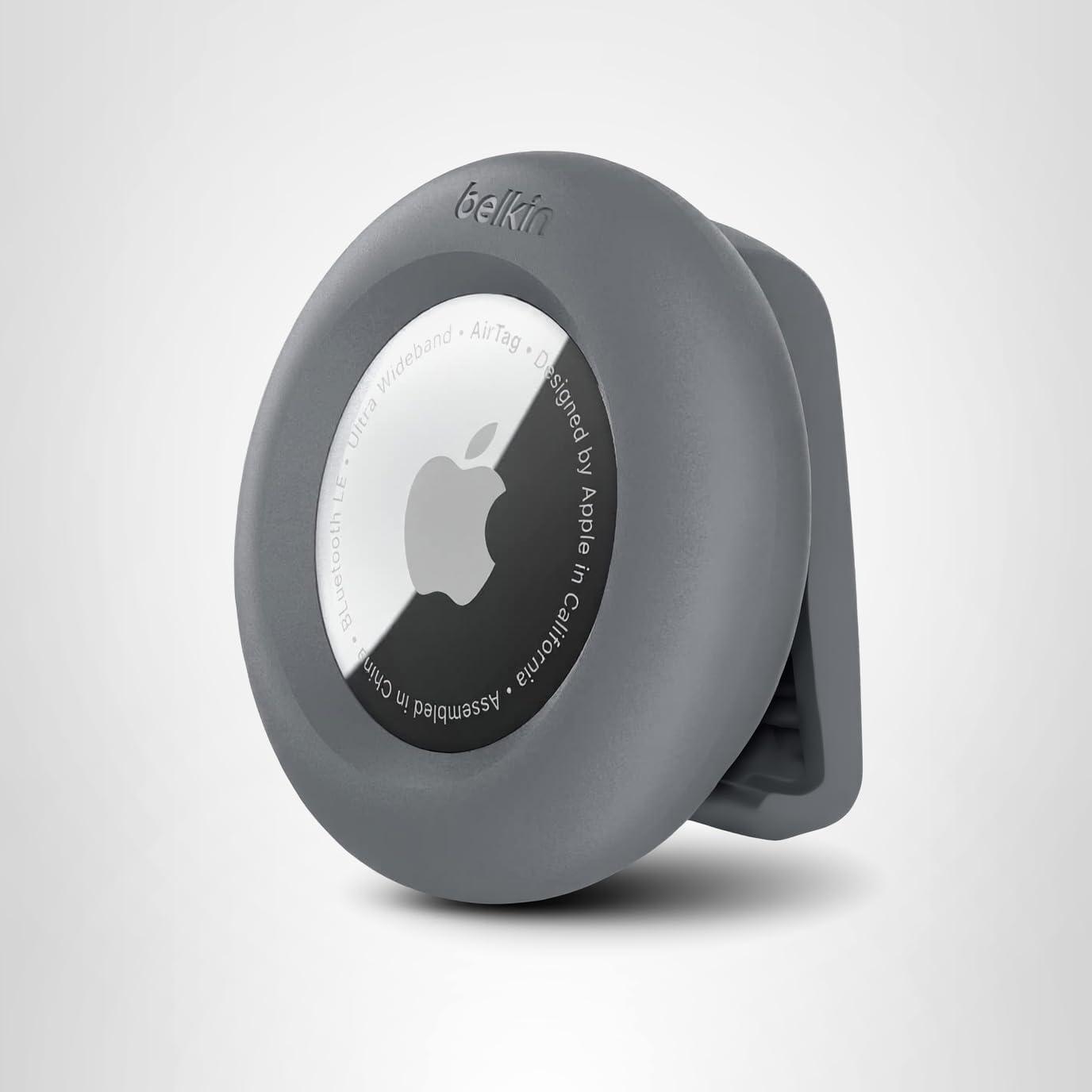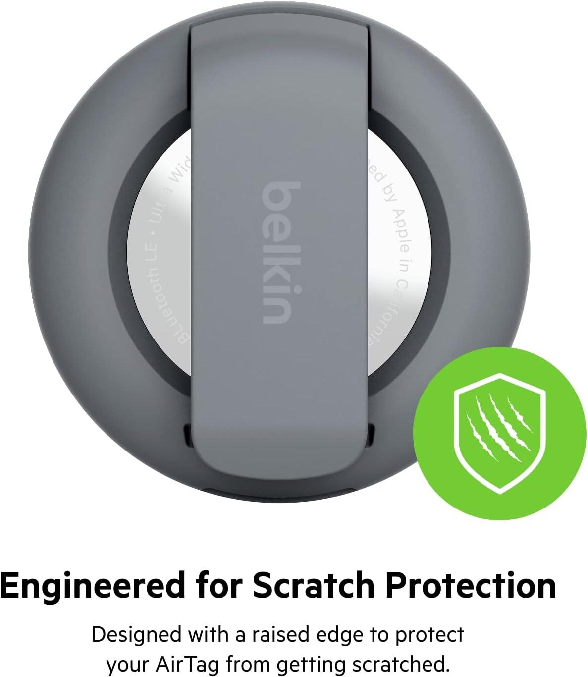 Belkin Apple AirTag Secure Holder with Clip – Durable Scratch Resistant Case Air Tag Spring Loaded Attach to Backpack, Clothing, and Luggage Black(Dark Gray)