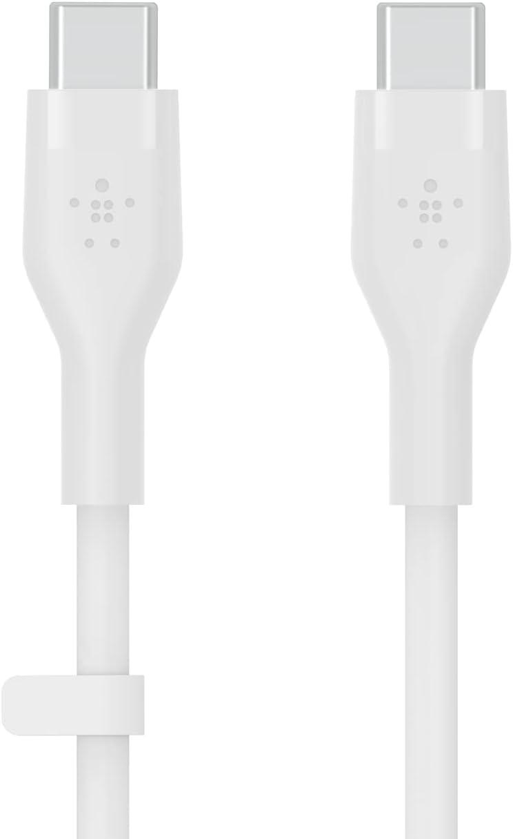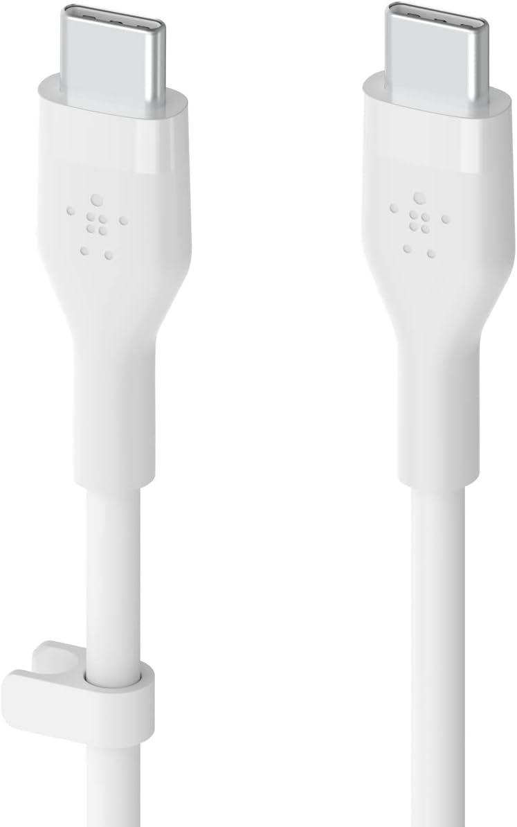 Belkin BoostCharge Flex Silicone USB-C to USB-C Charging Cable (3M/10FT) for iPhone 16, iPhone 16 Pro, Galaxy S25, S24, Pixel 9 & 8, Nintendo Switch 2 & More with Cable Clip – White(White)