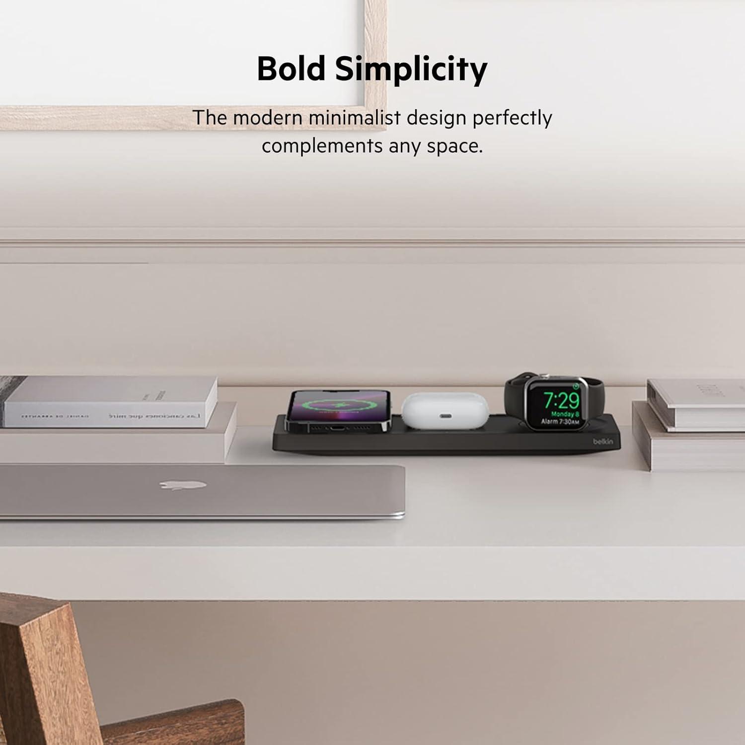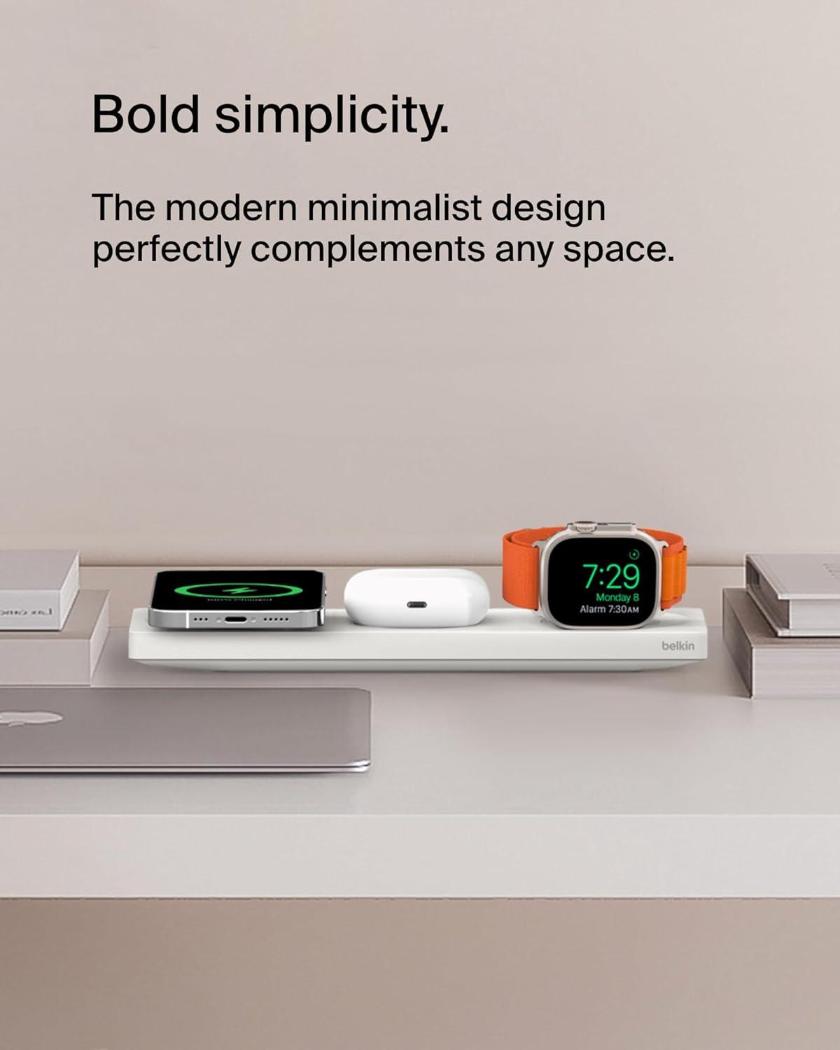 Belkin BoostCharge Pro 15W 3-In-1 Wireless MagSafe Charging Pad – White(White)