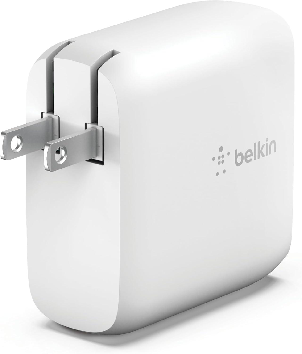 Belkin Dual Port USB C Charger Block 68W – USB C Cable Included (2M) – GaN w/ PD iPhone Fast Charging – Samsung Galaxy S25, Apple iPhone 17, Air, Pro, iPad, AirPods, Macbook, Nintendo Switch 2 – White(Includes USB-C to USB-C cable)