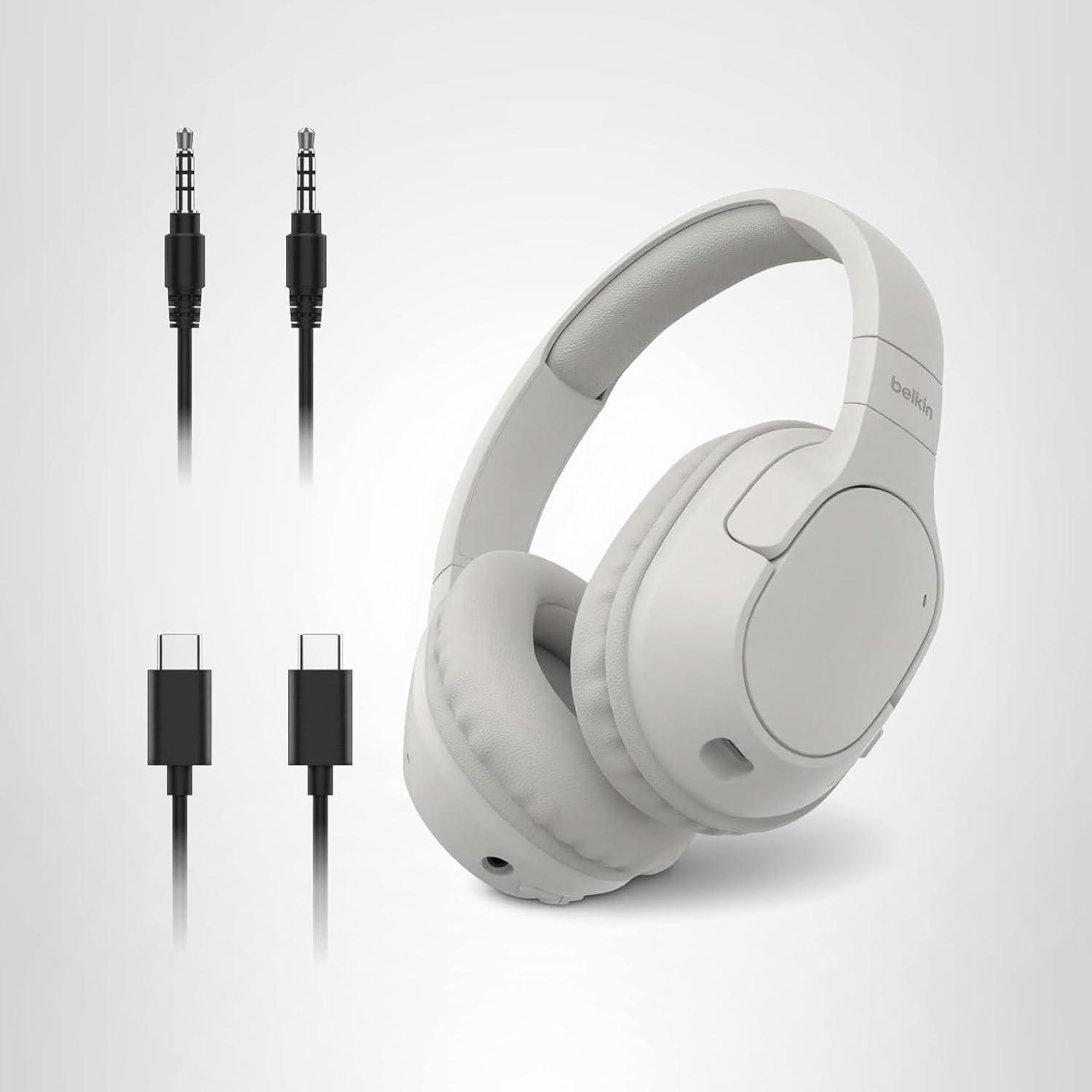 Belkin SoundForm Surround Bluetooth Over-Ear Headphones – Environmental Noise Cancelling Headphones – Wireless w/ 60H Playtime & Soft Ear Cups for iPhone, Galaxy, iPad, Travel, Home, or Office – Black(Sand)